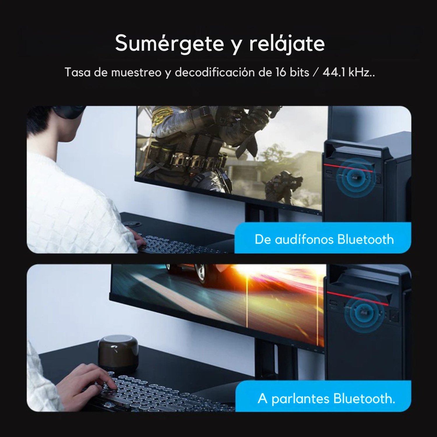 Este adaptador ofrece tecnología Bluetooth 5.4 de alto rendimiento, con compatibilidad con versiones anteriores como 5.3, 5.2, 5.1, 5.0 y 4.0. Es perfecto para conectar audífonos, parlantes, teclados, impresoras, controles de juego y otros periféricos con Bluetooth.