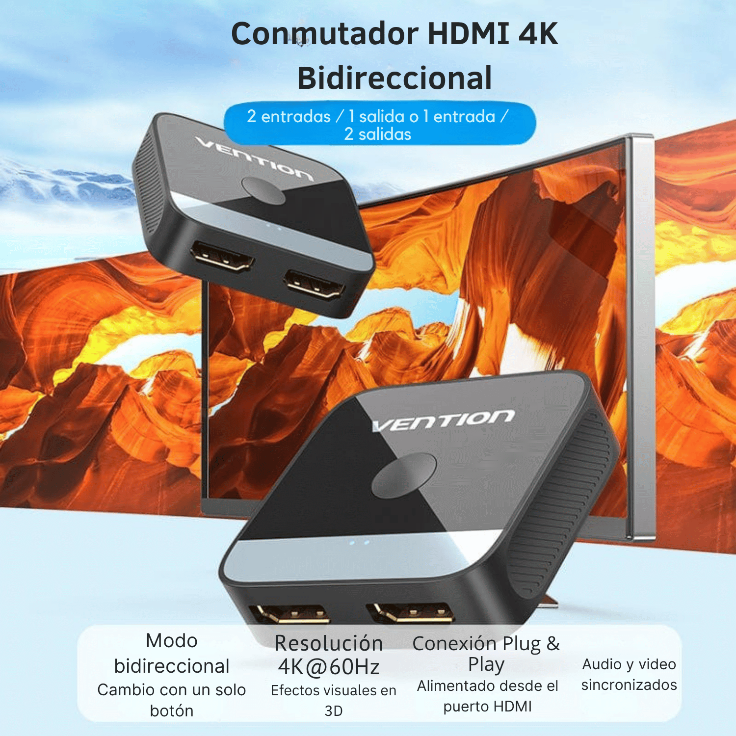 Conmutador HDMI Vention 4K Bidireccional 2x1 1x2 PS5 Xbox TV