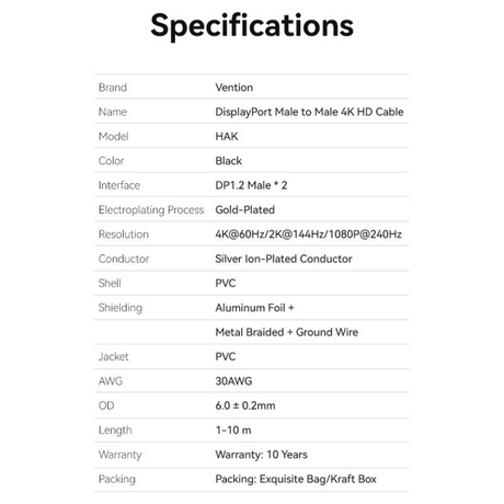 Cable Displayport Displayport 4k 60hz 2m Vention Premium