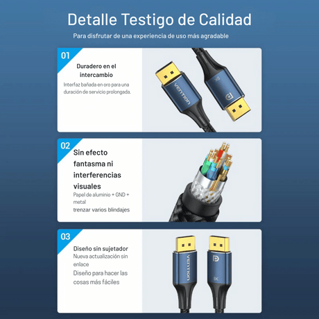 Cable Displayport Dp Premium 1.4 8k 4k 1m Vention Cert Malla
