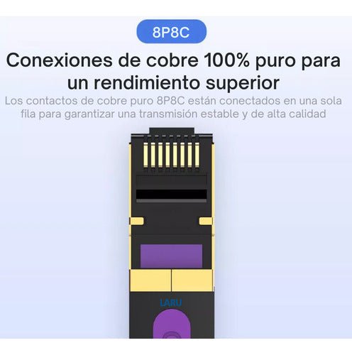 Gracias a su tecnología SFTP (Shielded Foiled Twisted Pair), este cable está blindado para minimizar interferencias electromagnéticas, asegurando una señal más fuerte y confiable. Tu conexión será más estable, incluso en entornos con mucha interferencia.
