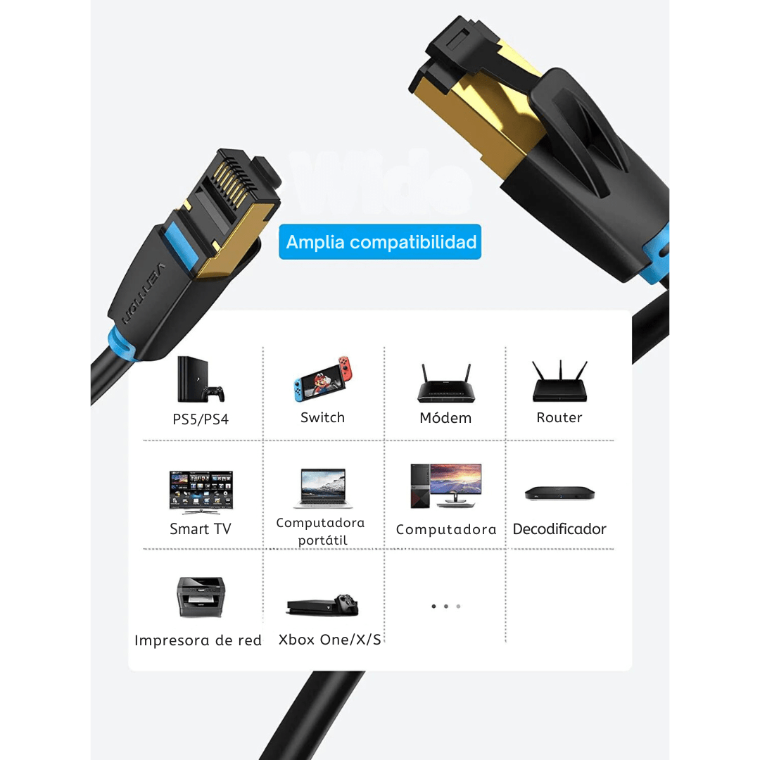 Versatilidad sin Límites: Perfecto para los amantes de los juegos, es la elección ideal para tu Xbox One, Xbox Series X-S, PS5, PS4, Switch y otros dispositivos. Además, es compatible con dispositivos que utilizan cables Ethernet CAT 7, CAT 6a, CAT 6, CAT 5 y CAT 5e.