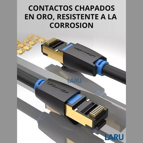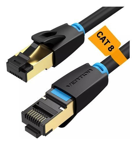 Cable Vention Ethernet CAT 8 de 8M, 100% cobre, 40 Gbps y 2000 MHz. Cable blindado, con conectores enchapados en oro, obtenidos hasta 4 veces mas velocidad que un cable Cat7