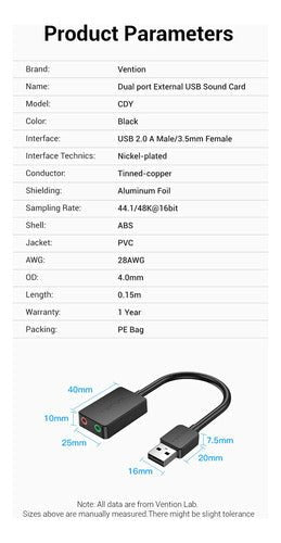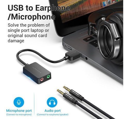 Adaptador Tarjeta Sonido Audio Usb 2 Puertos Vention Premium