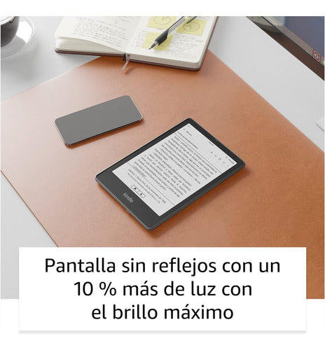 El Kindle Paperwhite Signature Edition es fino, ligero y fácil de transportar, para que puedas disfrutar de tus libros favoritos en cualquier momento. Gracias a nuestra pantalla Paperwhite sin reflejos de 300 ppp, ahora con un 10 % más de luz con el brillo máximo, podrás leer bajo cualquier luz. Con 32 GB de almacenamiento, podrás llevarte miles de libros contigo adondequiera que vayas.
