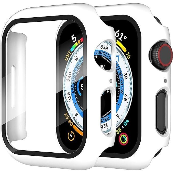 Protector de pantalla de policarbonato duro y resistente, cubre completamente la pantalla del Apple Watch, incluso los bordes curvos. Esta funda de cobertura completa protege tu Apple Watch de rasguños, golpes y caídas accidentales.