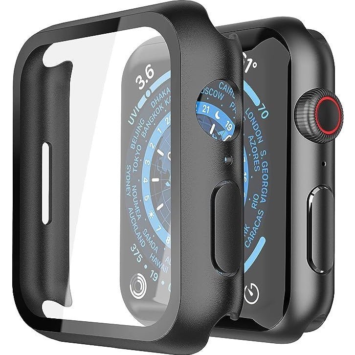 Protector de pantalla de policarbonato duro y resistente, cubre completamente la pantalla del Apple Watch, incluso los bordes curvos. Esta funda de cobertura completa protege tu Apple Watch de rasguños, golpes y caídas accidentales.